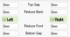 Left : Reduces the width of the part by the given distance, any reduction of width is from the left of the part.