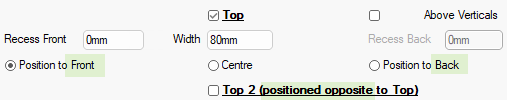 Options to size and position to Front and Back (highlighted in green below) allowing a second top/bottom opposite to the first (emulating front/back rails). Each of these can then be individually sized - see also Labour & Construction > Top/Bottom page.