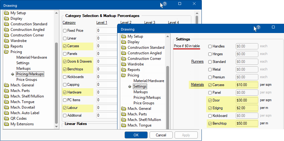 For this example report, ensure that the necessary categories on the Pricing/Markups page are set and the Hardware Accessory is costed.