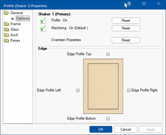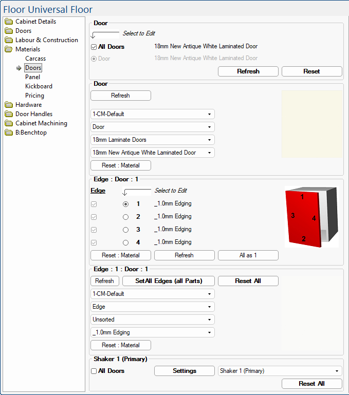 To enable DoorMaster LT profiles, tick the All Doors checkbox and use the drop list to select the Shaker Profile.