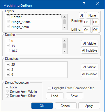 These controls only affect individual cabinets in your current drawing and no machining is associated.