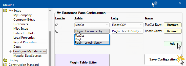 Once you’ve enabled a plugin, you can then access the control on the My Extensions > Plug-Ins page of the Drawing Properties or the individual cabinet.