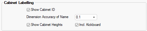 The Show Cabinet Height option allows the cabinet height on to be shown on the plan and works in conjunction with the Display Cabinet Height option at cabinet level i.e. both checkboxes need to be ticked.