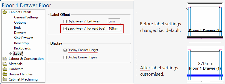 The cabinet labels can be moved up/down and left/right for clarity - see tip on Label Offset above.