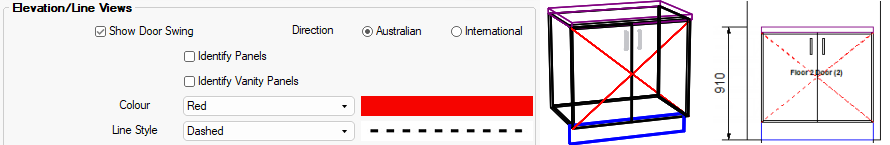 The Direction of Door Swing can be set to Australian or International using the radio buttons.