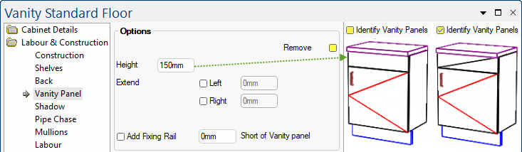 Click to view Colour page and the Cabinet Details > Label page which allows you to offset cabinet labels.