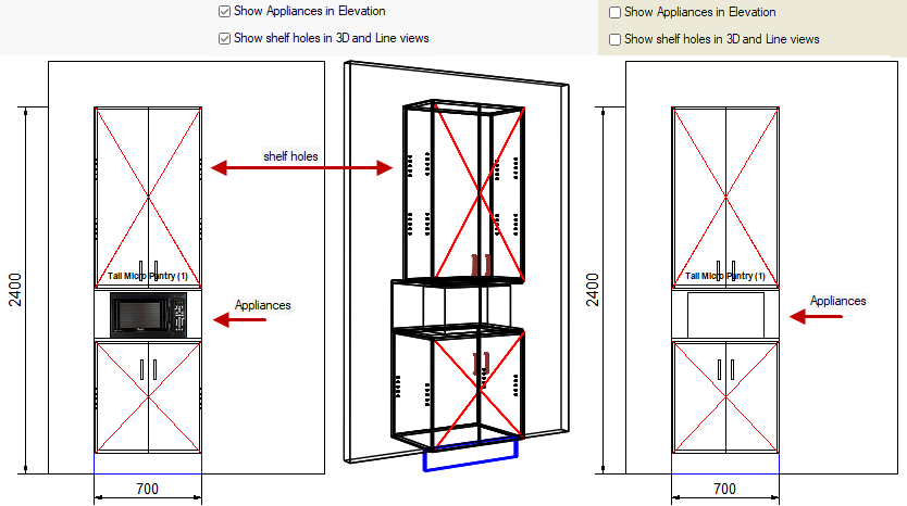 Appliances can be displayed in Elevation View by ticking this checkbox.