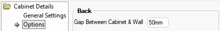The Cabinet Outline Covers Gap Behind Cabinet option can be used to turn on/off the outline for the carcass area including any gap.