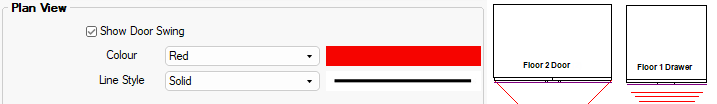 When Show Door Swing option is enabled, you can change the Colour and Line Style using drop lists.