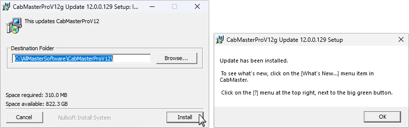 CabMaster Software™ is now installed, you can run CabMasterPro from the shortcut on the desktop.