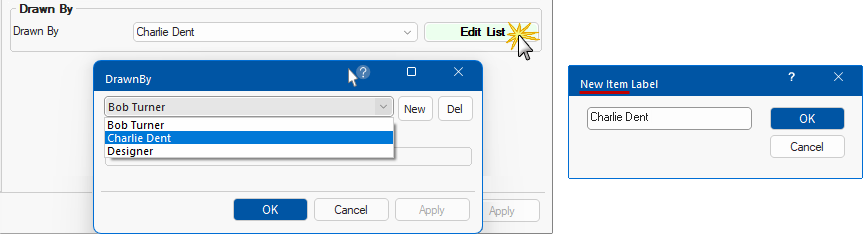 This drop list allows you to select the details of the designer that is responsible for the job/drawing. These details can be viewed on the Job Checklist, if required.