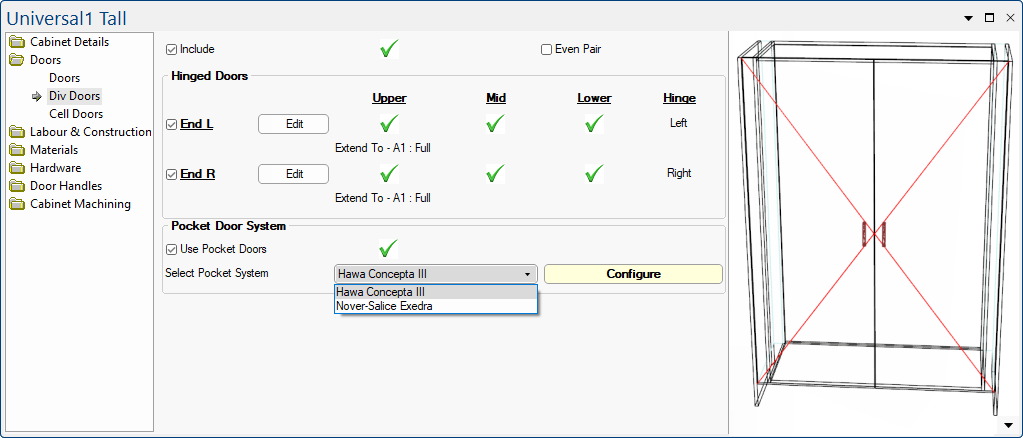 The Hawa Concepta III pocket door system is available in the Universal1 Cabinet.