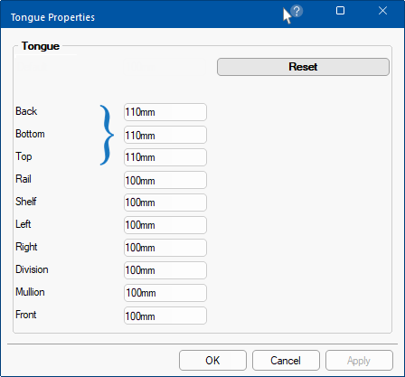 Undersize Length and Undersize Thickness edit boxes provided to undersize the tongue, allowing some ‘give’.