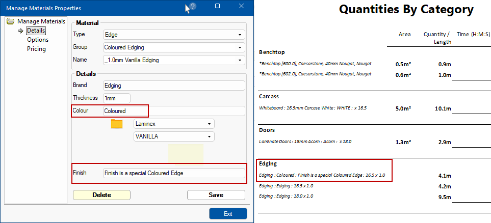 - RDL Reports : Quantities - Edging now includes grouping by Finish