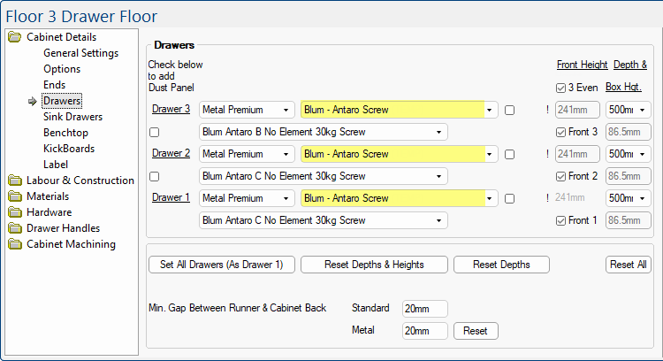 - Universal and Robes : Drawer - Front Material not setting/resetting correctly