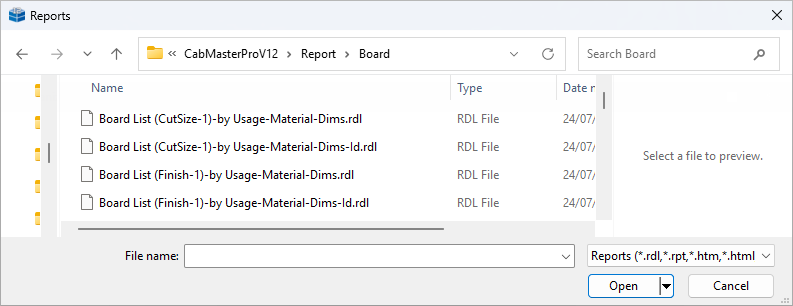 - RDL Report : Board Lists by Usage-Material-Dims-Id
