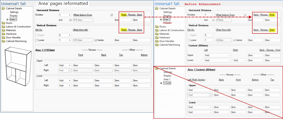 - Top : Similar feature to above except applied to the 'Verticals' object that can be imported into an Area of the universal cabinet.